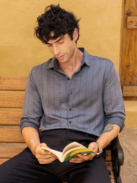 Men's Grey Pinstriped Regular Fit Casual Shirt