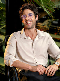 Men's Light Brown Floral Embroidered Full Sleeve Shirt