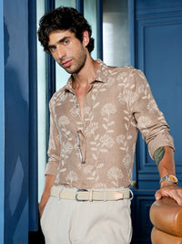 Men's Brown Floral Print Regular Fit Casual Shirt
