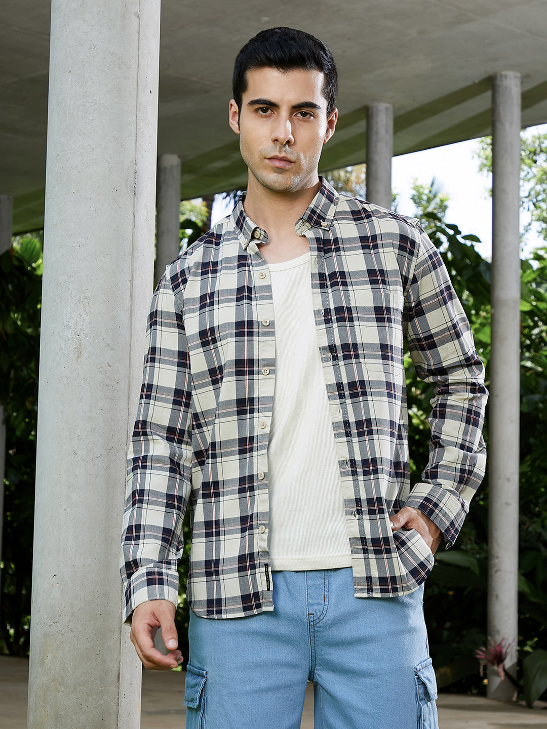 Regular price ₹1,999 Sale price ₹999Button-Down Tartan-Jacquard Shirt