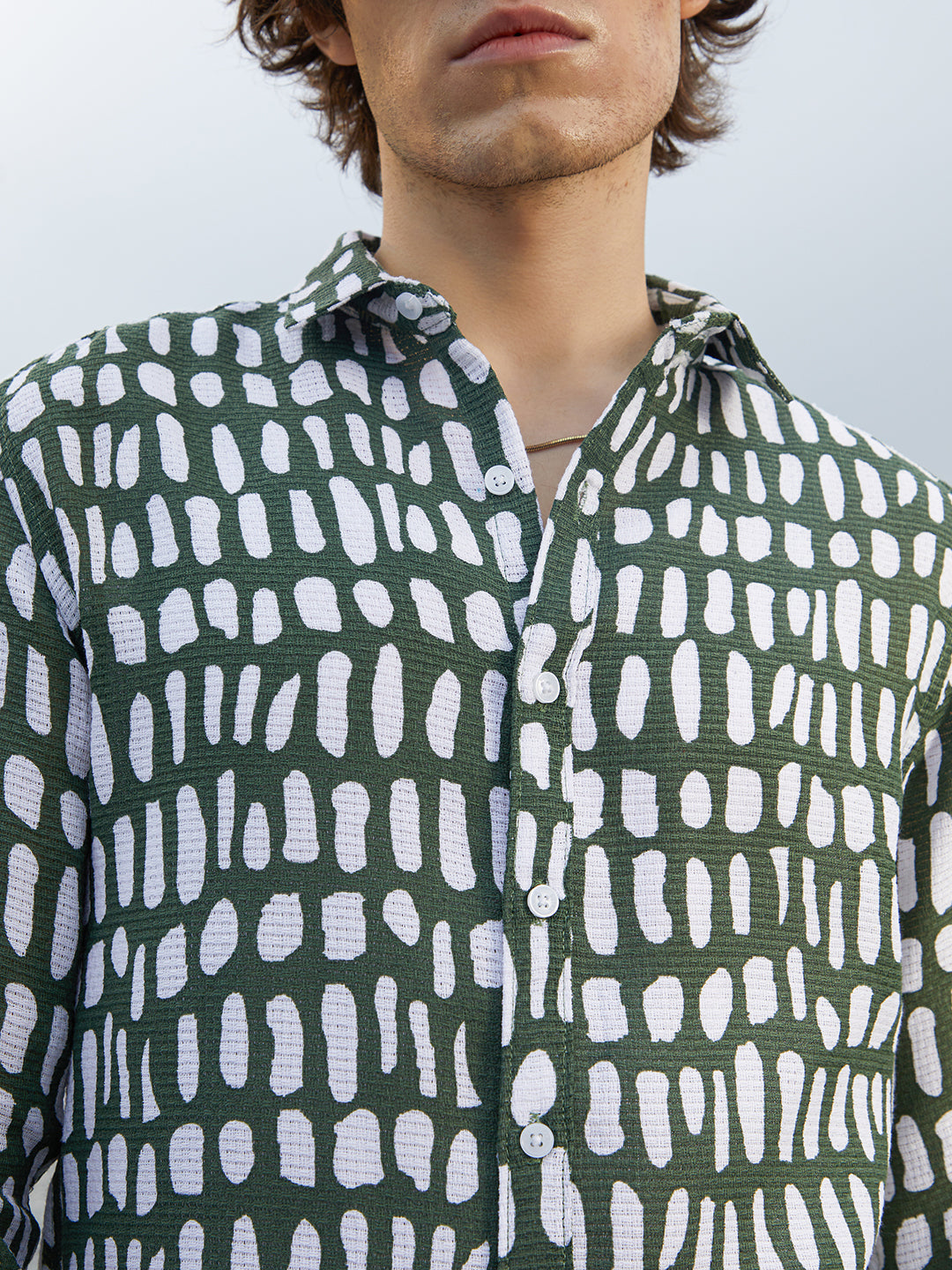 Wear this stylish shirt from the house of Campus Sutra. The shirt is comfortable to wear as the fabrics are light on the skin. Using stellar quality solvents, the shirt is made for your daily schedule. Constructed to fit your style spot on and a wide range of sizes to match your persona. Made to not leech out its colours and not lose its shape either. Fetch a casual and cool look for yourself by teaming it with a pair of trousers and sneakers. Whether you are dressing up for a date or going to work, this Campus Sutra shirt is designed keeping in mind the latest trends in contemporary casual fashion. Combining style with the fashion of today and makes you stand out among others when you adore it. An all-in-all guide for your wardrobe. The ultimate addition to your casual closet. Perfect for year-round occasions from summertime to cool winters. Strong, dynamic essence for your quirky personality. Campus Sutra showcases a stylish edit that will instantly upgrade your look. Charming looks and infinite comfort – be it stylish all-over prints or solid pastels, our clothes are designed to ensure that you can be at the top of your style game. Our vast range of jackets, shirts, trousers and much more are curated to be dependable and relaxing.!