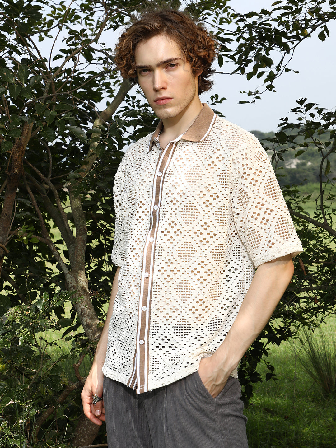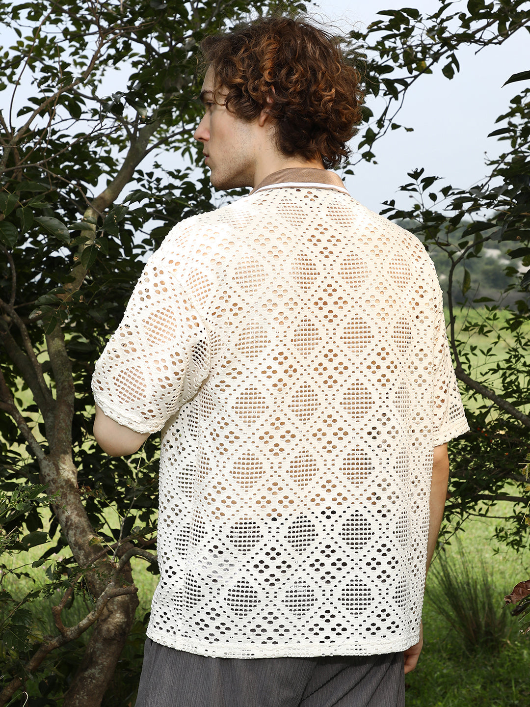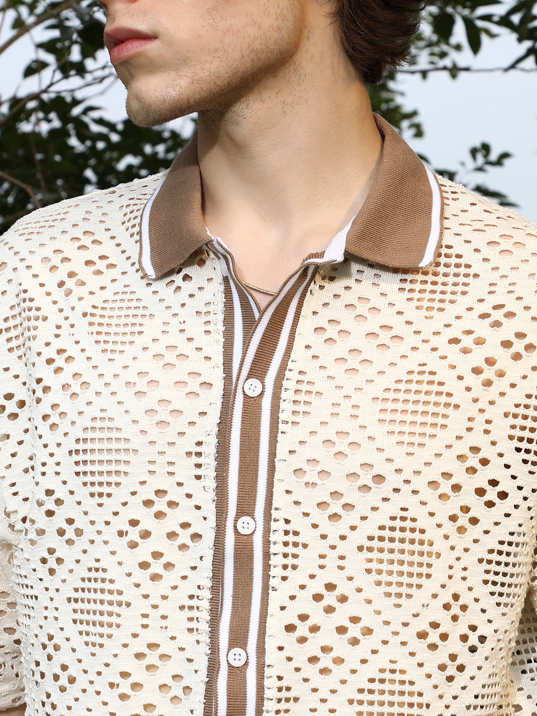 Geometric-Knit Oversized Shirt