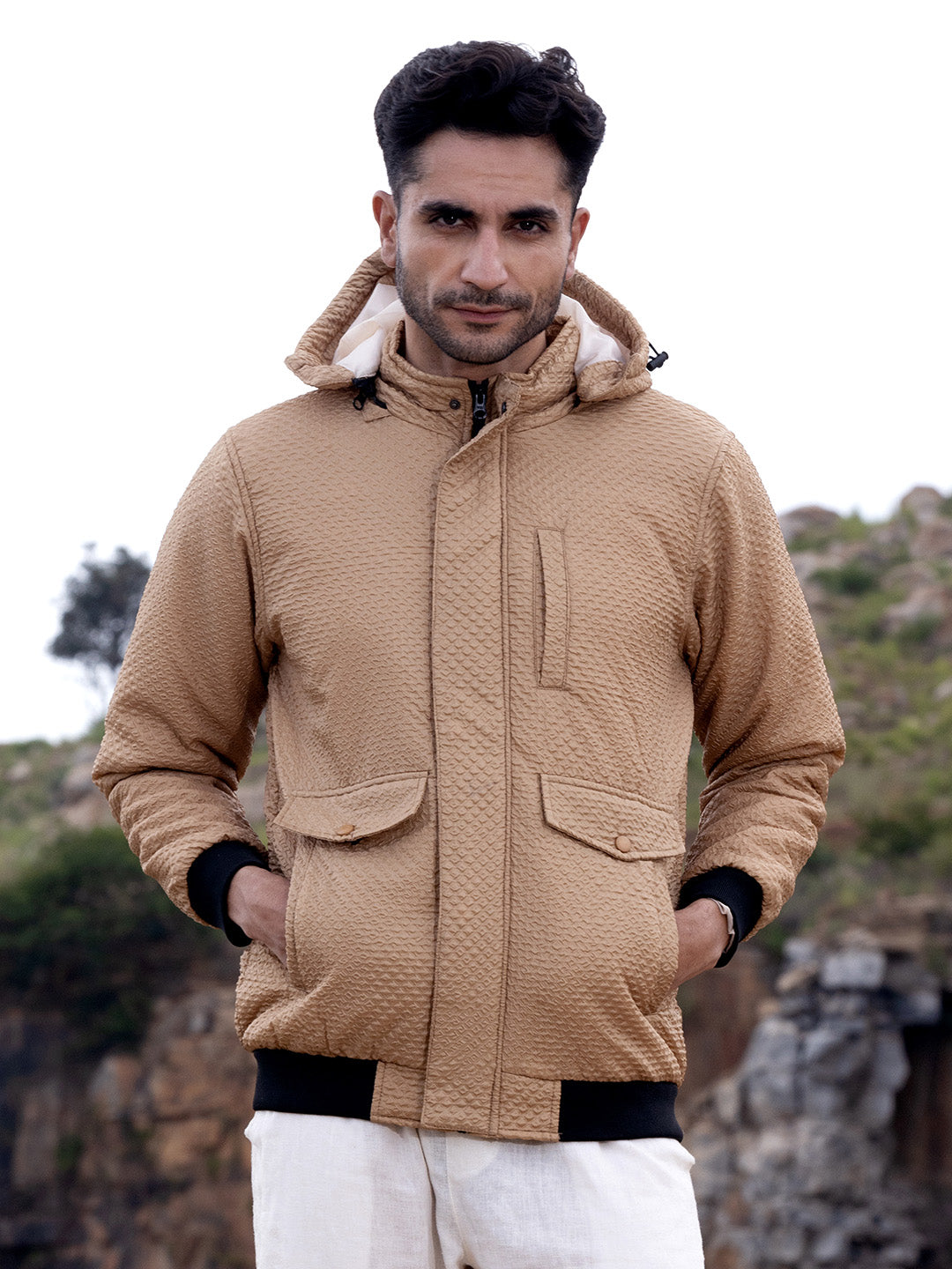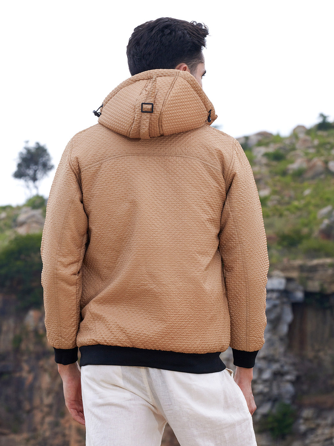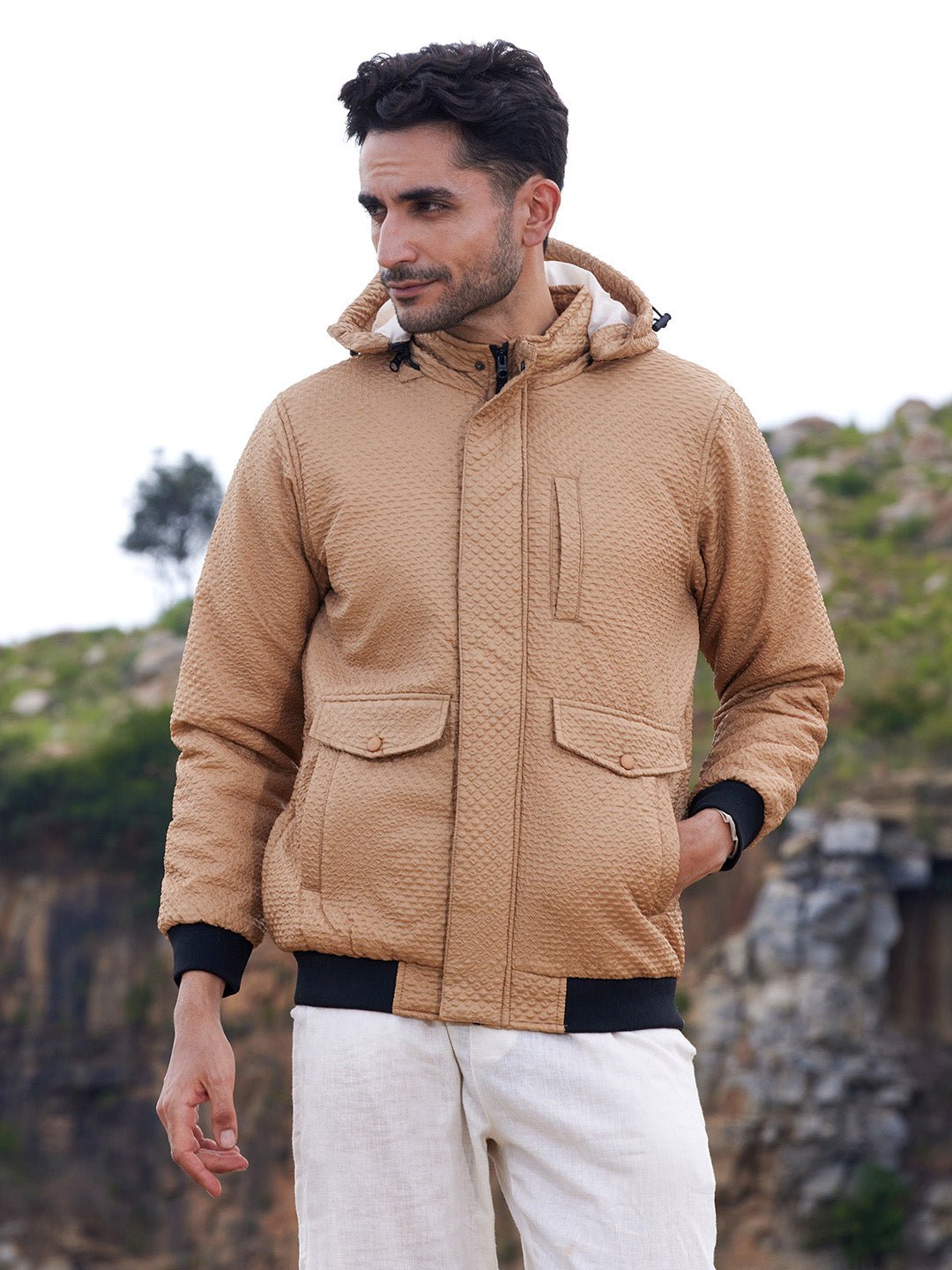 Self-Design Diamond Puffer Jacket With Fleece Hood