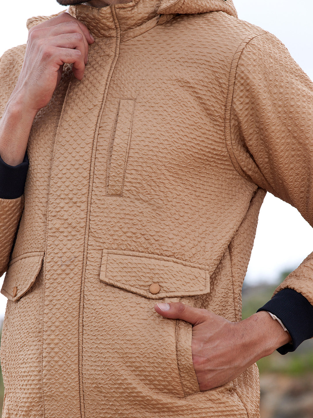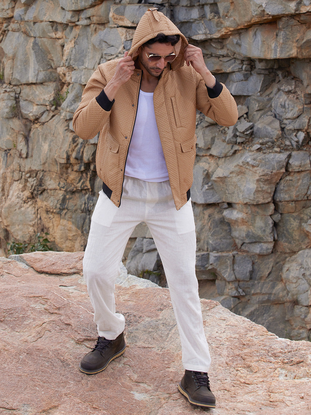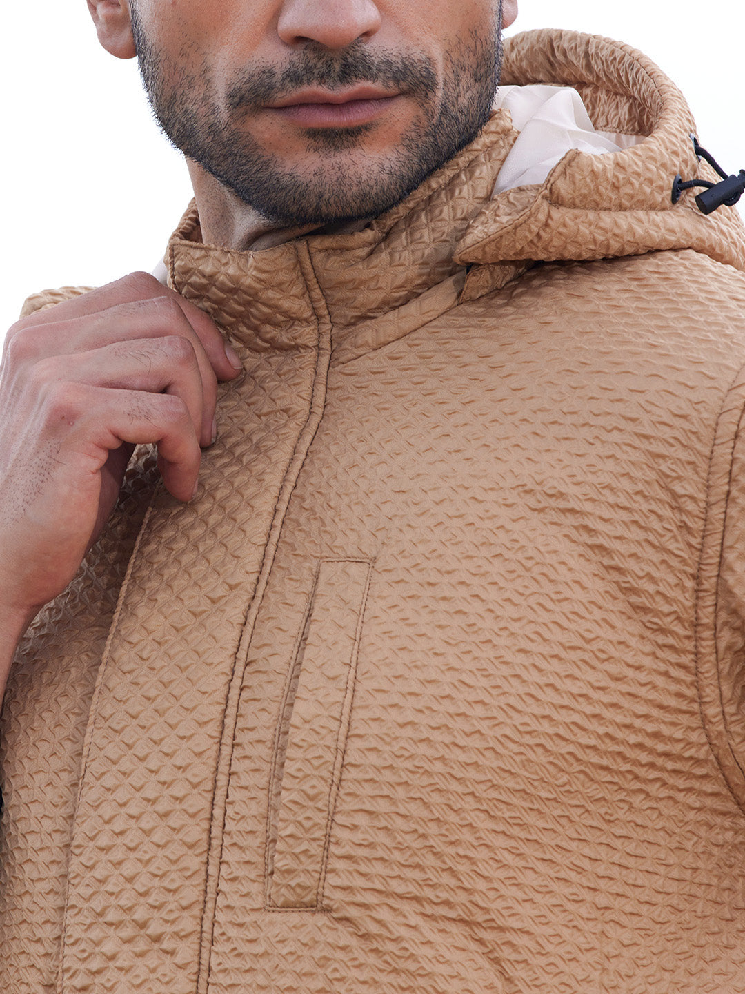 Self-Design Diamond Puffer Jacket With Fleece Hood