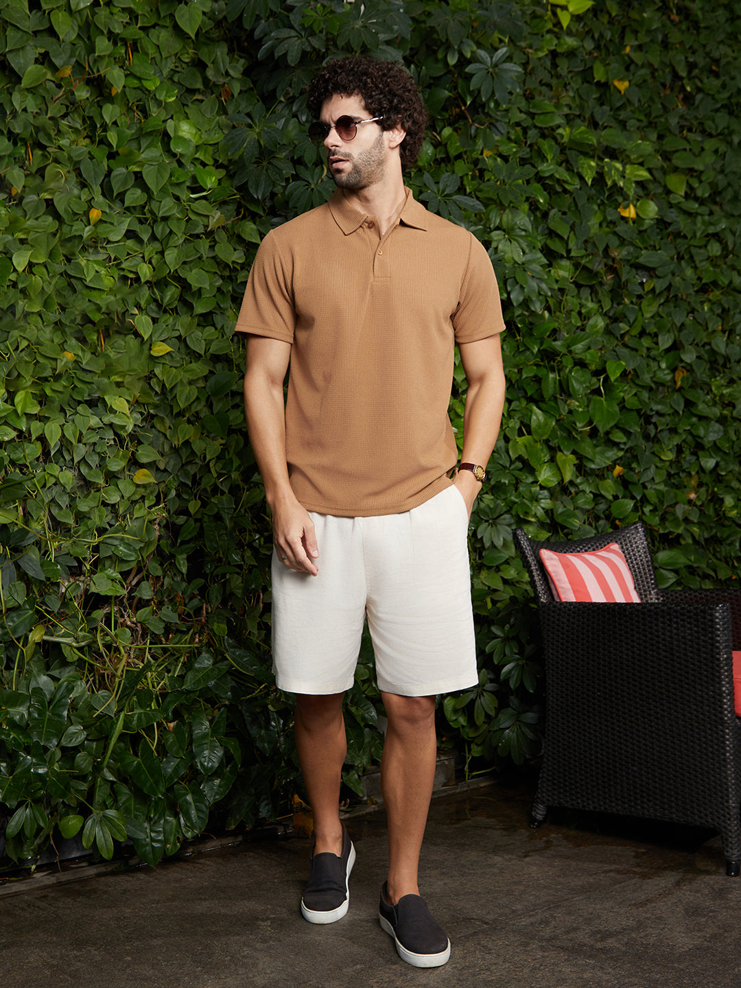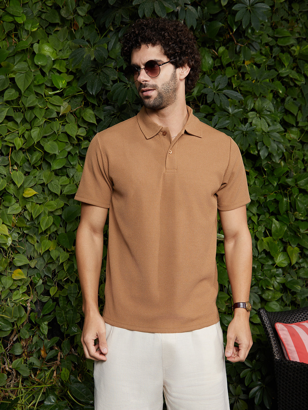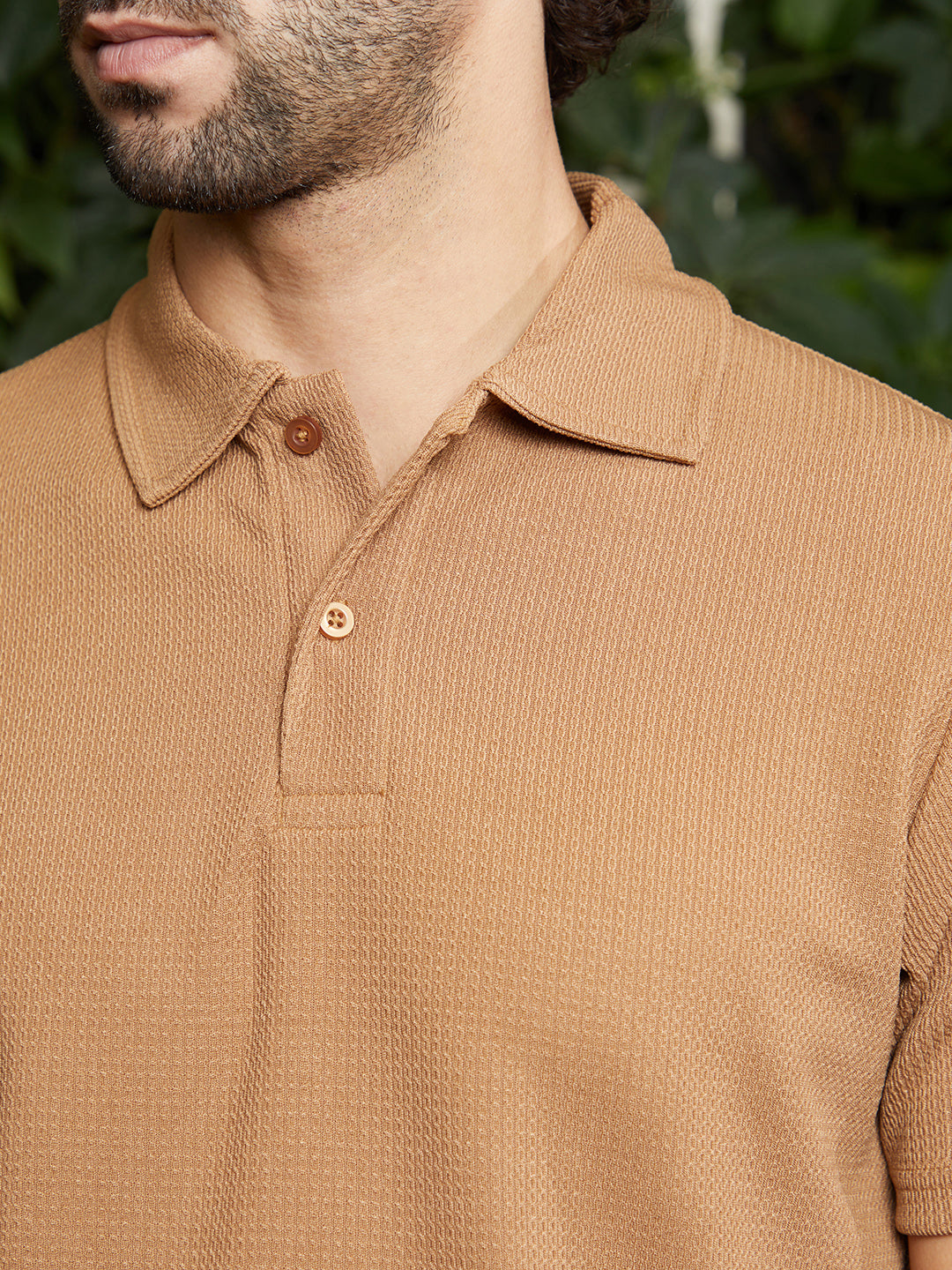 Chainlink-Ribbed Polo T-Shirt