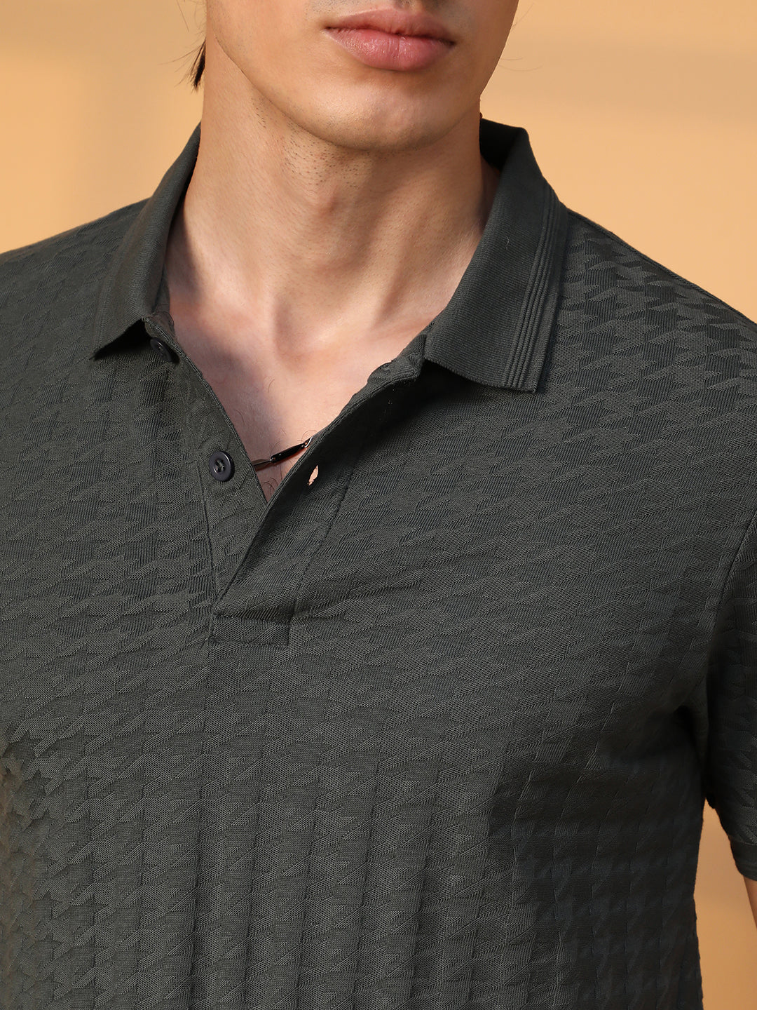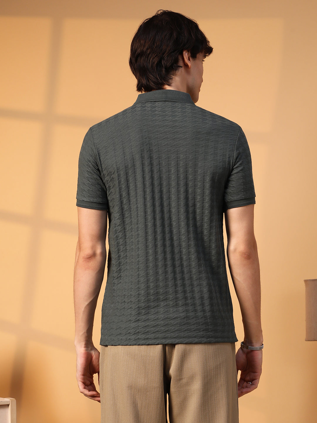 Houndstooth-Textured Polo T-Shirt