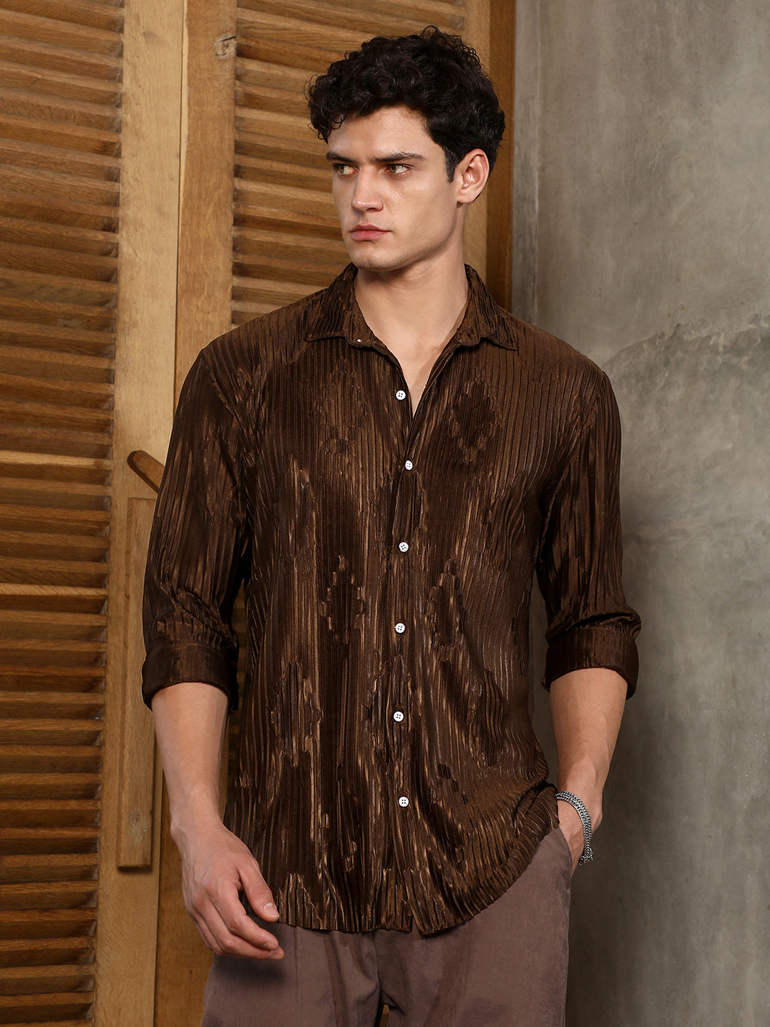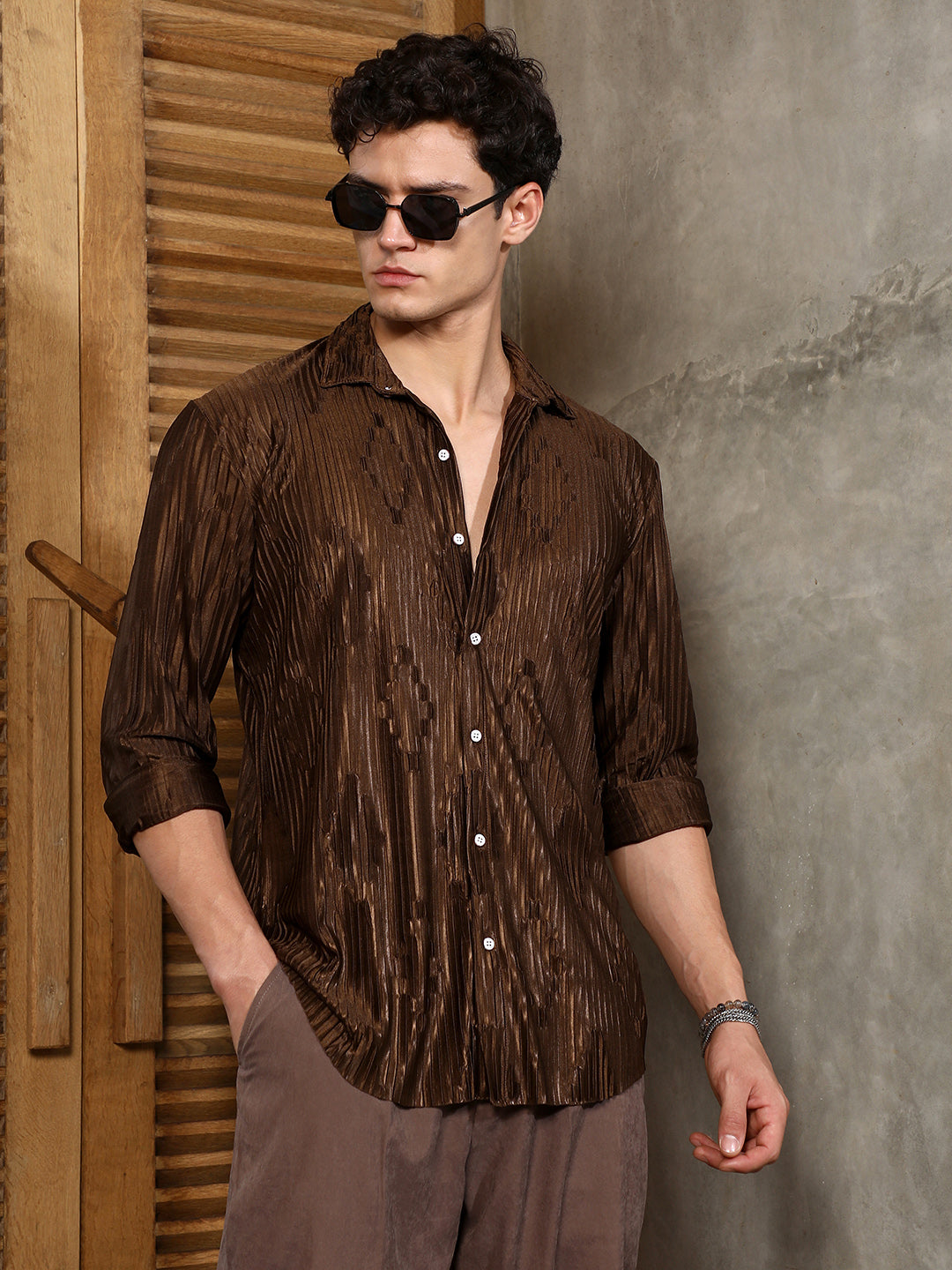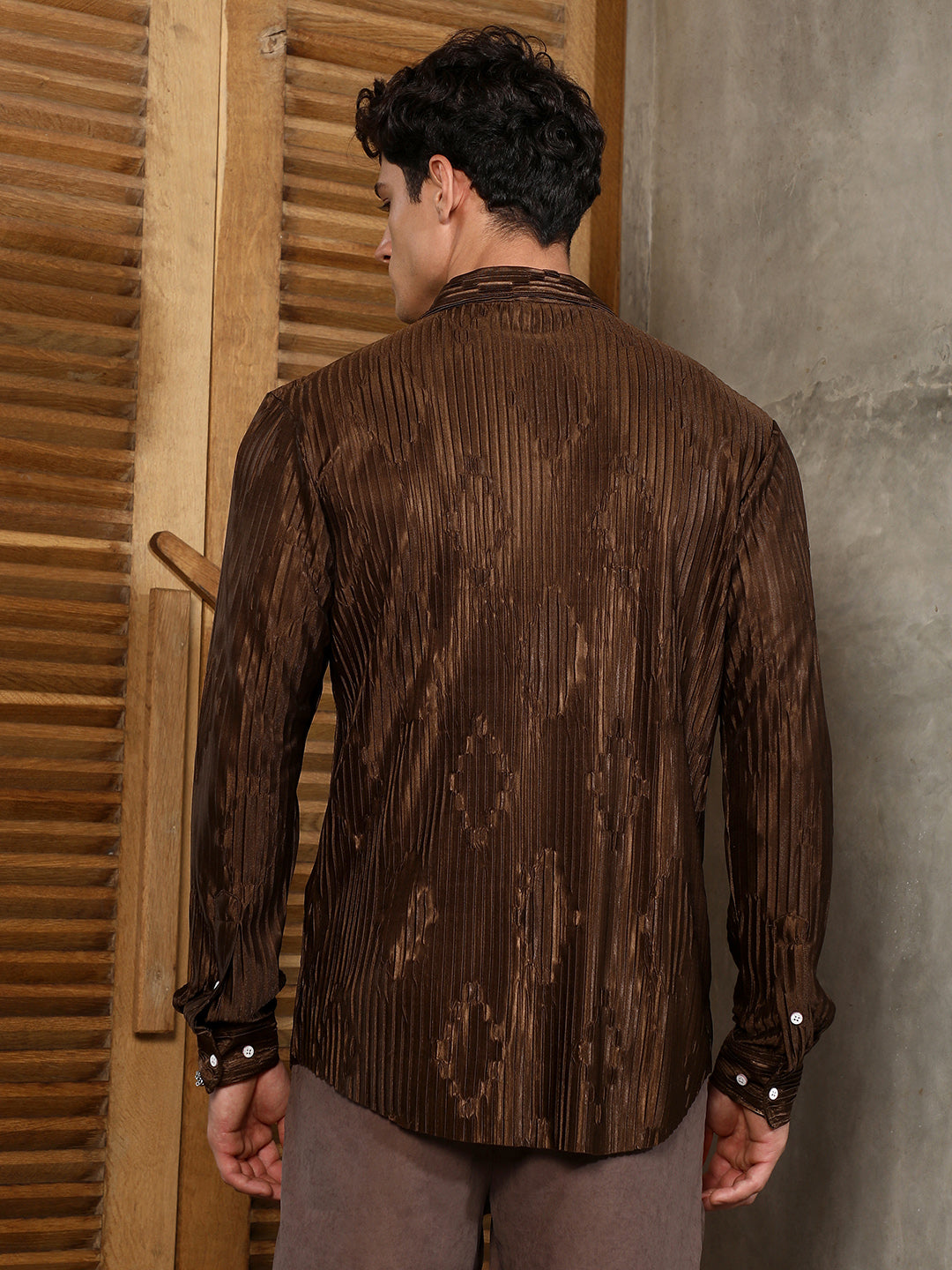Chocolate Brown Pleated-Rhombus Shirt