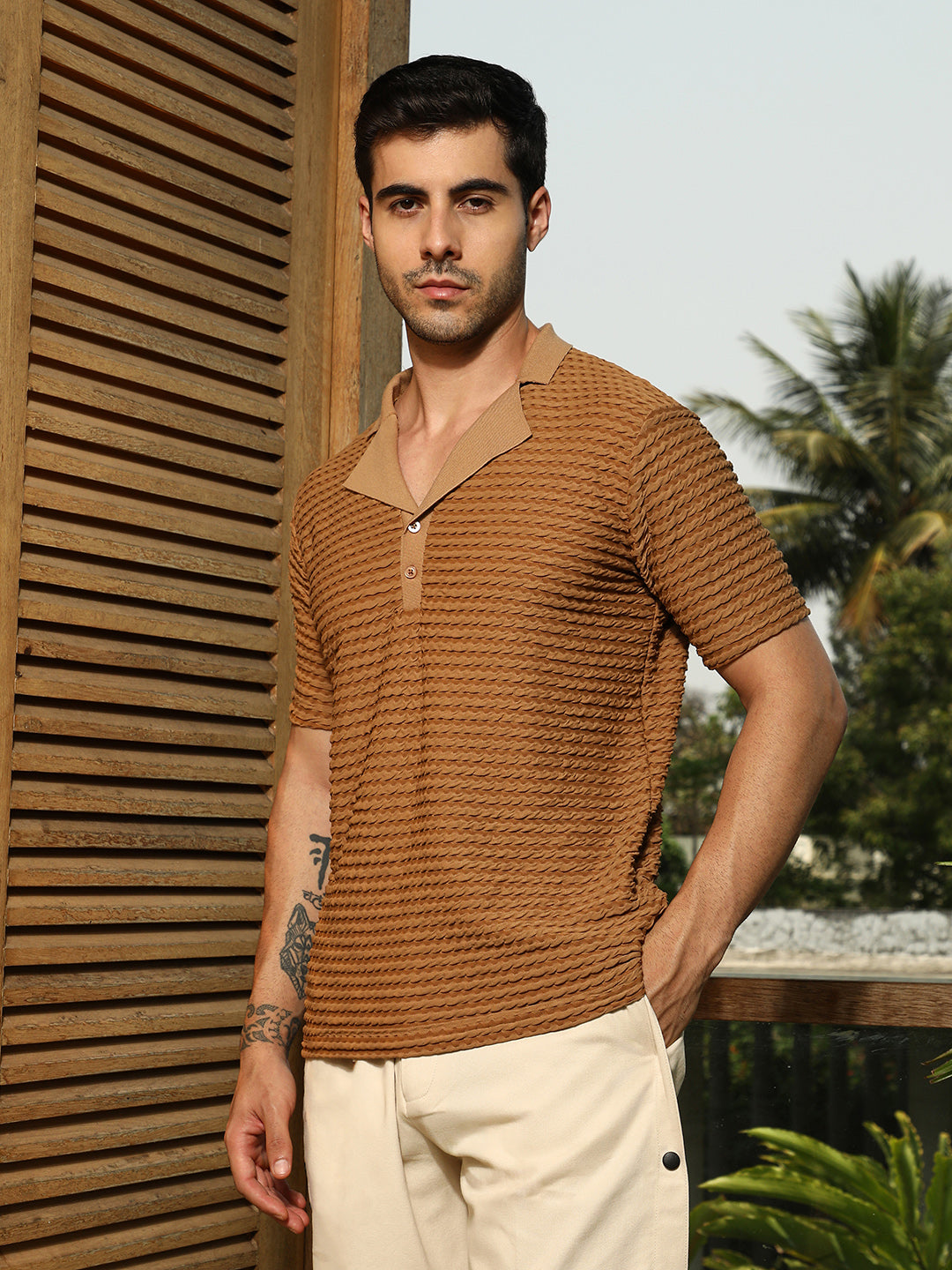 Crease-Tactile Cuban Polo T-Shirt