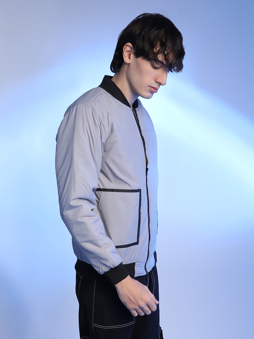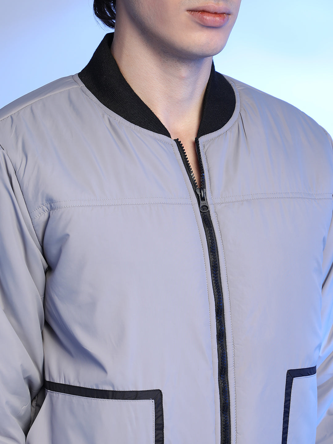 Zip-Front Puffer Jacket With Contrast Detail