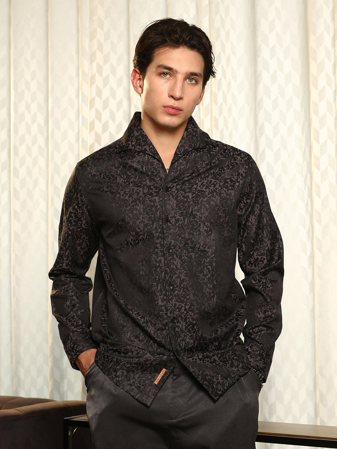 Crafted from a premium cotton blend, this men's shirt combines the softness of cotton with the durability of polyester, ensuring long-lasting comfort and wear. The breathable fabric keeps you cool and comfortable throughout the day, making it ideal for both casual outings and formal events. Featuring a unique abstract pattern, this shirt adds a touch of sophistication and modern style to your wardrobe. The slim fit design and button-down closure provide a tailored look that enhances your overall appearance. Designed with a curved hem and point collar, this shirt offers versatility and elegance, making it suitable for office wear, evening parties, or casual gatherings. With its woven texture and smooth finish, this shirt stands out as a stylish and practical choice for men seeking quality and fashion. Upgrade your wardrobe with this versatile piece that effortlessly blends comfort, style, and functionality.Combining style with the fashion of today and makes you stand out among others when you adore it. An all-in-all guide for your wardrobe. The ultimate addition to your casual closet. Strong, dynamic essence for your quirky personality. Campus Sutra showcases a stylish edit that will instantly upgrade your look. Charming looks and infinite comfort – be it stylish all-over prints or solid pastels, our clothes are designed to ensure that you can be at the top of your style game.!