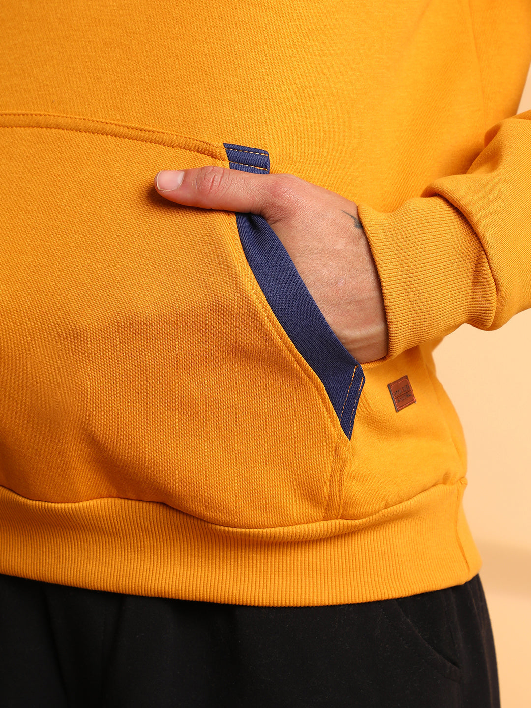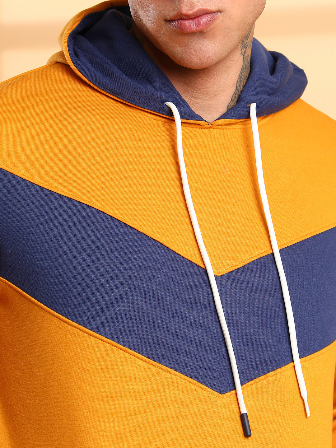 Men's Contrast Panel Hoodie With Ribbed Hem