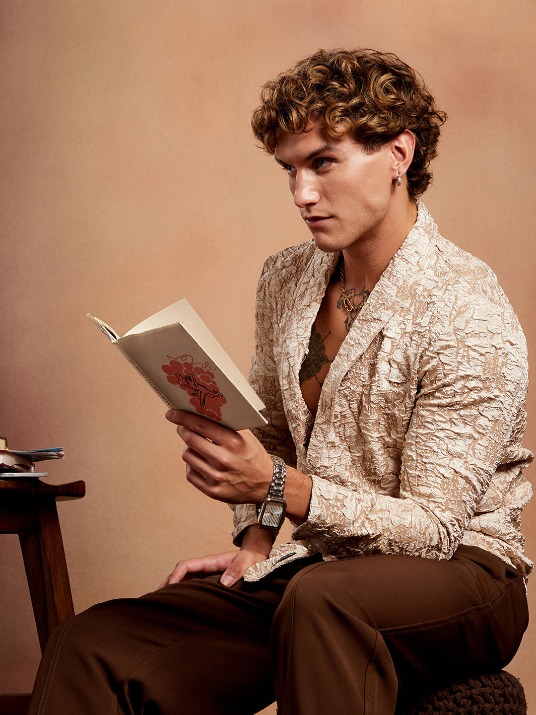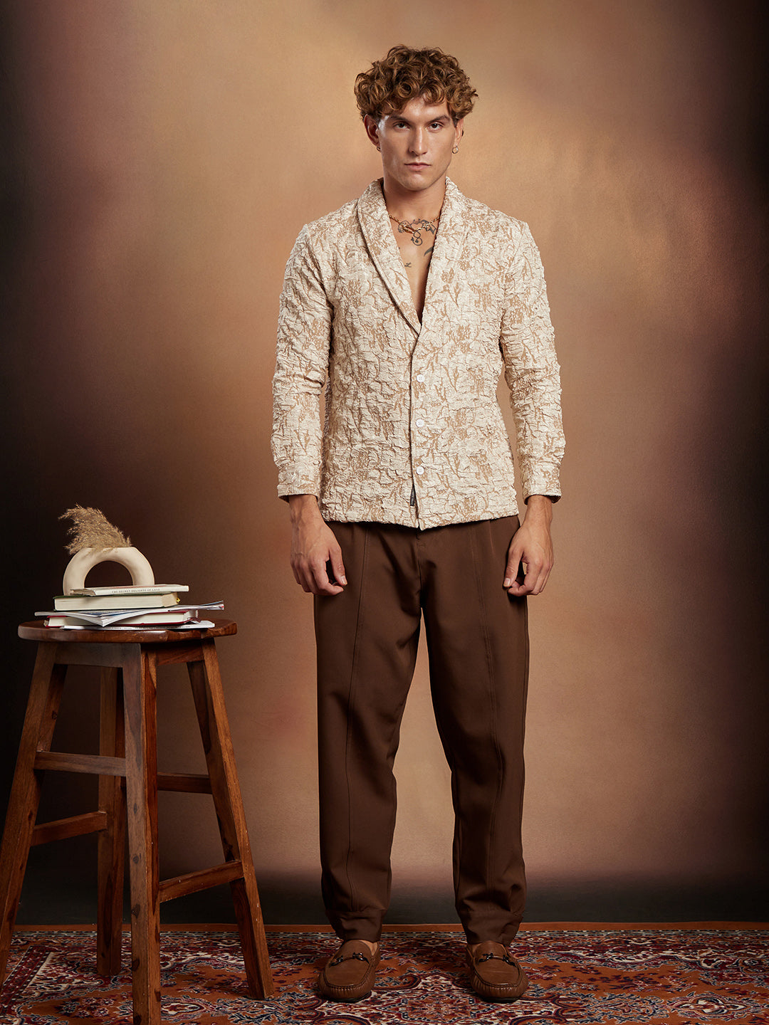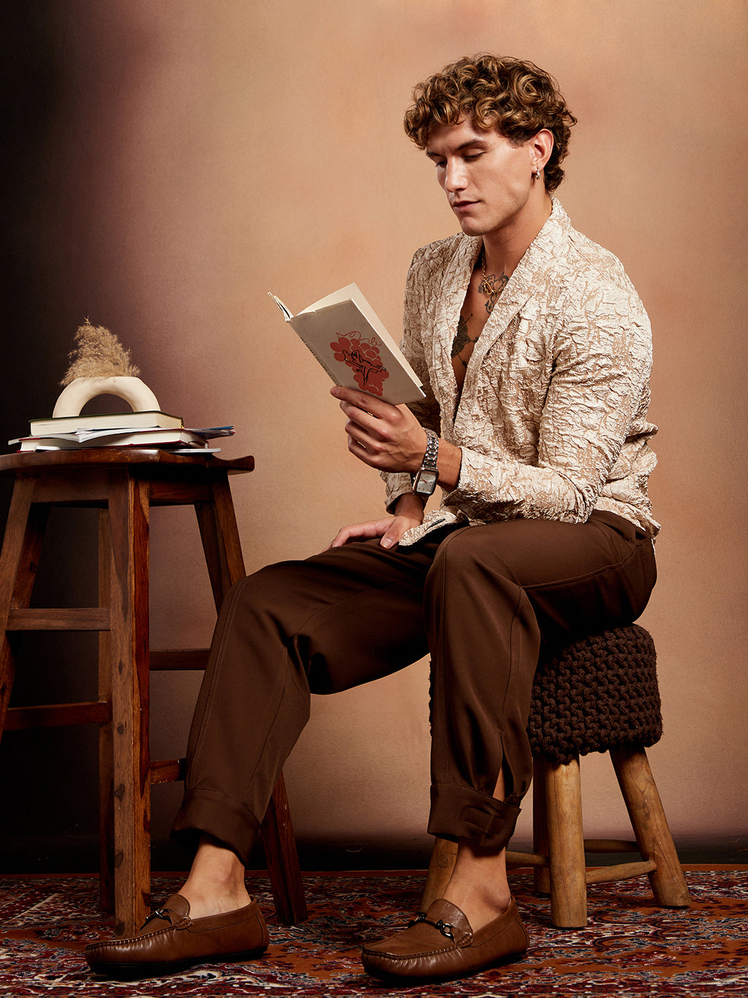 Crushed Shawl Collar Oversized Shirt