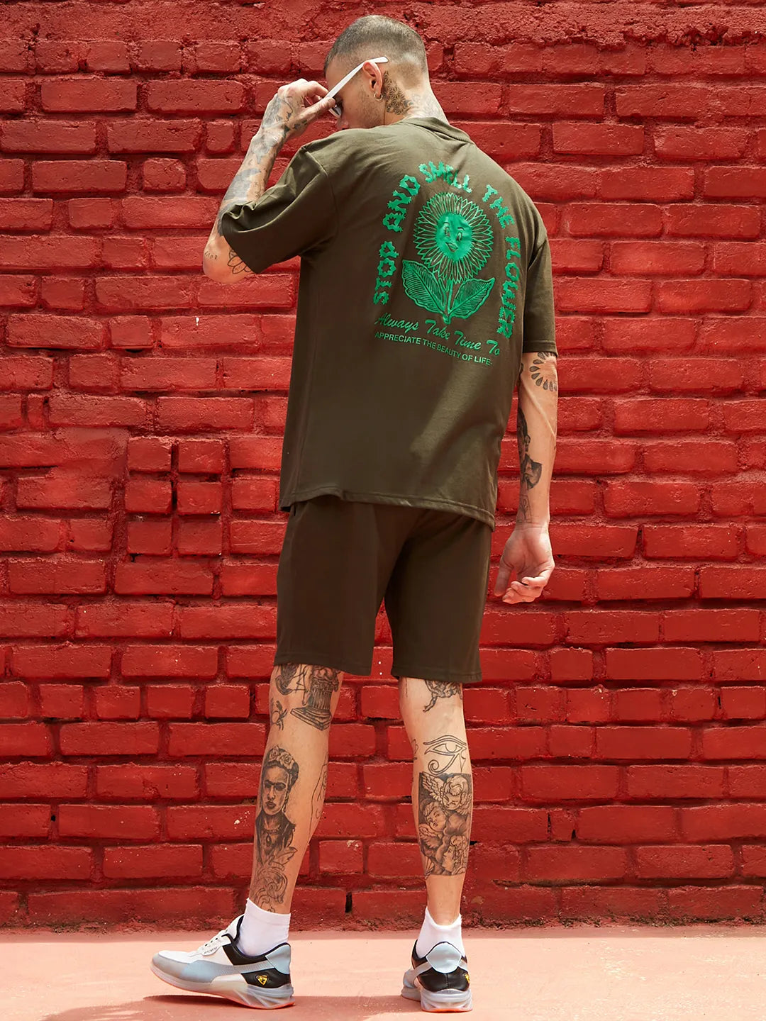 Oversized Forest Green Smell The Flower Co-Ord Set